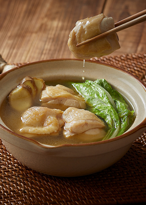 充分融合雞湯的甘美與豬大骨湯的厚實,並加入柴魚及昆布燉煮提鮮,不論燉煮蔬菜或肉類皆合宜。