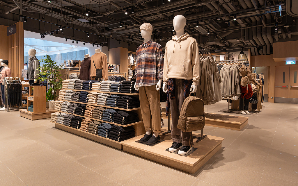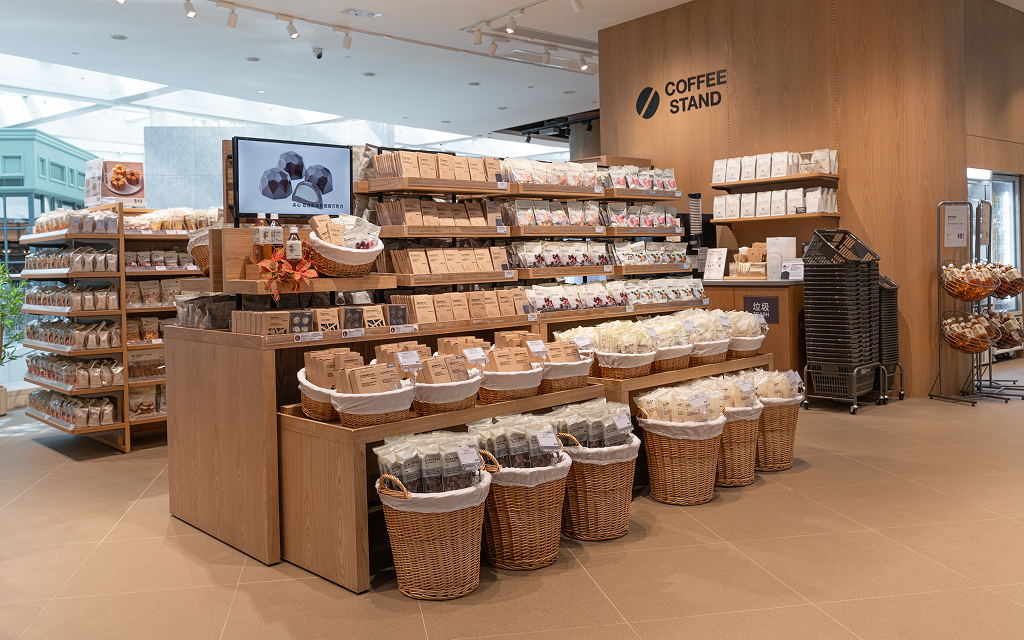 新店設計簡潔,強調自然和可持續的生活理念。店內採用再生材搭配木紋邊緣,展現石材的樸實美感,並配搭天然木質家具,呈現出自然純樸、簡單及可持續性的生活理念。設計巧妙地利用大型天幕將自然光線充分引進室內,揉合柔和燈光,搭配明亮溫潤的天然及再造物料,勾劃出一個讓人悠然自在的舒適購物空間,讓顧客在購物同時,也能感受到與自然和諧共存的靜謐氛圍。